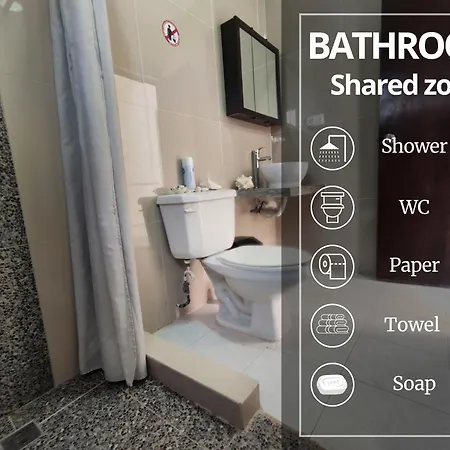 חדר אוכל, בקרת אקלים ומטבחון כלולים בכל אחד מהחדרים בדירה זו. בכל יחידת הדיור ישנו חדר אמבטיה משותף עם וילונות אמבטיה ומגבות.